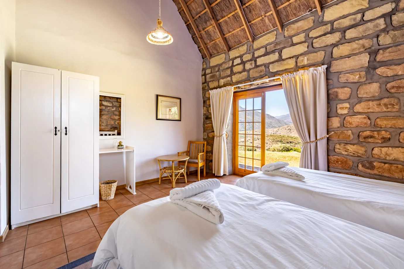 Phasemane House is well suited to families and groups looking for spacious mountain accommodation at Ramabanta Trading Post. The house offers flexible living areas designed for shared time, relaxed meals, and evenings spent together indoors during cooler months. With a welcoming layout and generous room sizes, Phasemane House provides a comfortable base for longer stays, group getaways, and family travel in the surrounding mountain region.
